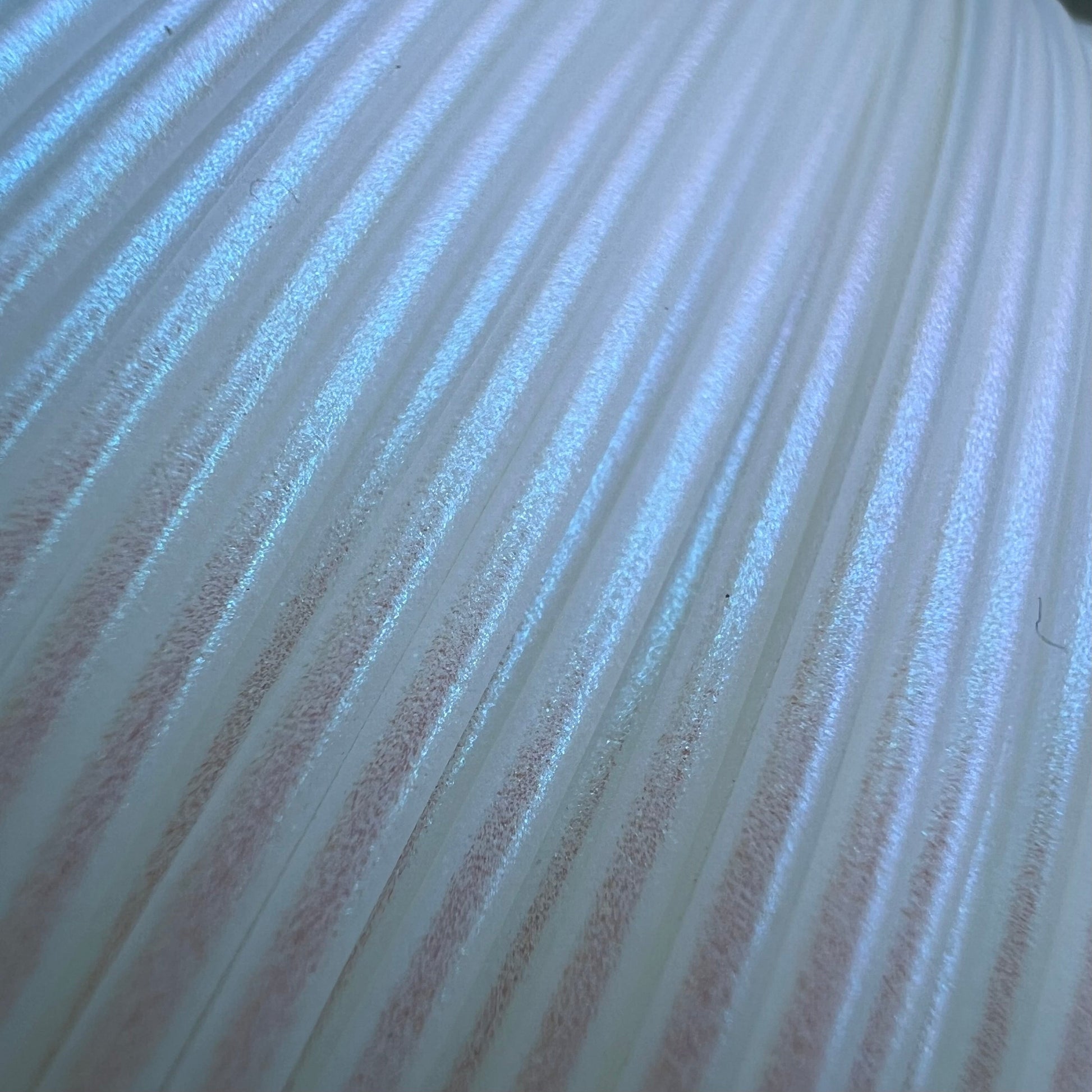 This is Blue Pearl Elixir - it is a beautiful white PLA with a subtle blue shimmer. This filament has an added surprise-it glows under UV light, but it is not abrasive so your standard nozzle should be fine. It is a strong and glossy filament and prints with a beautiful shine.