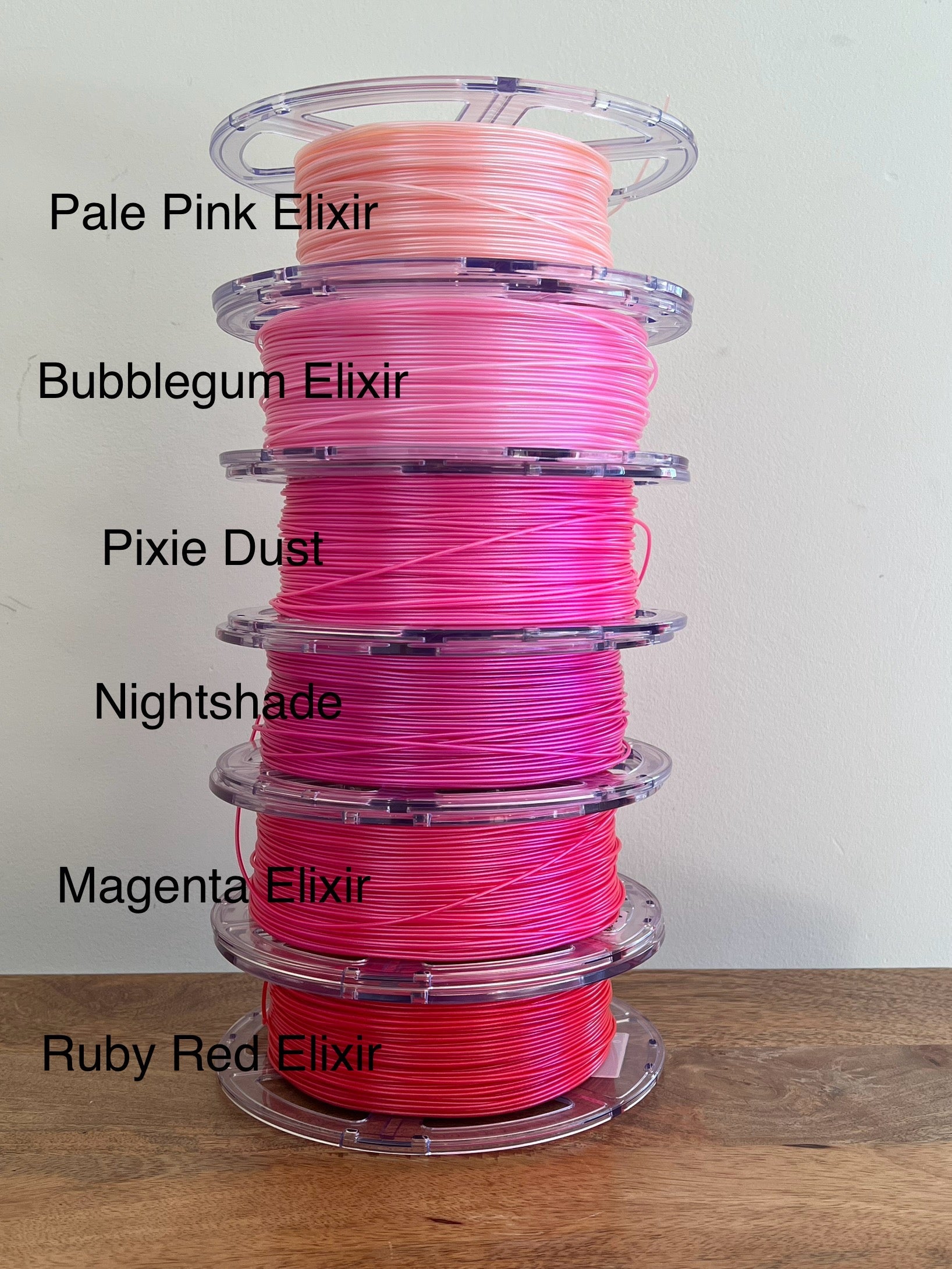 This is Magenta Elixir - it is a beautiful bright and red/pink PLA. It is a strong and glossy filament and prints with a beautiful shine.